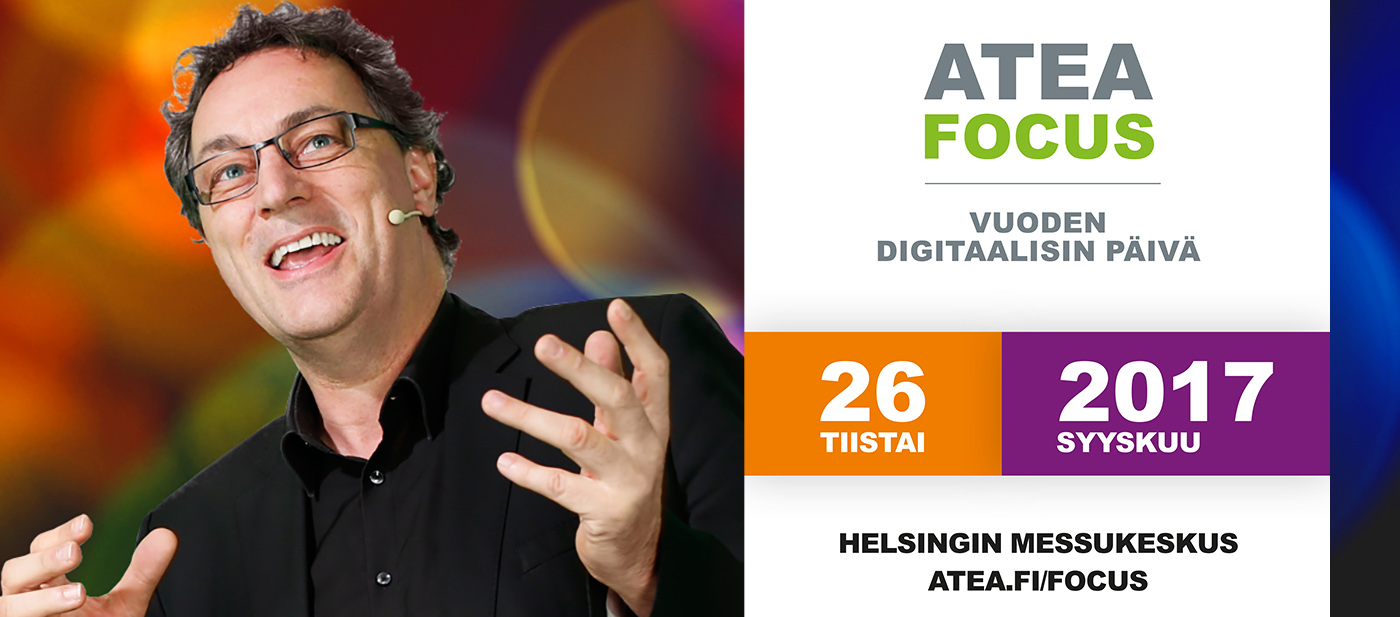 Gerd Leonhard puhui Atea Focus tapahtumassa 26.9.2017.