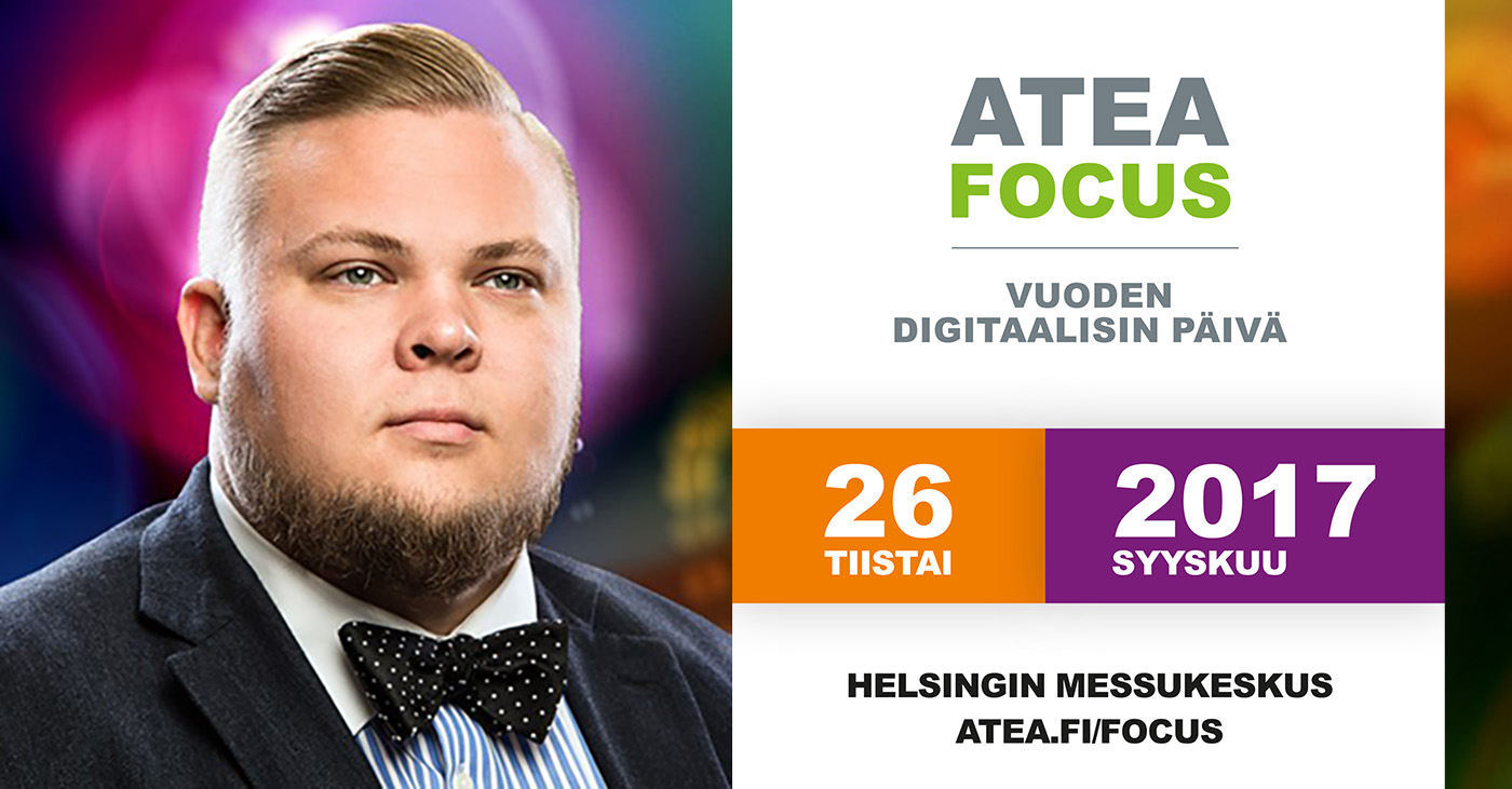 Mikael Hugg puhui Atea Focus tapahtumassa 26.9.2017.