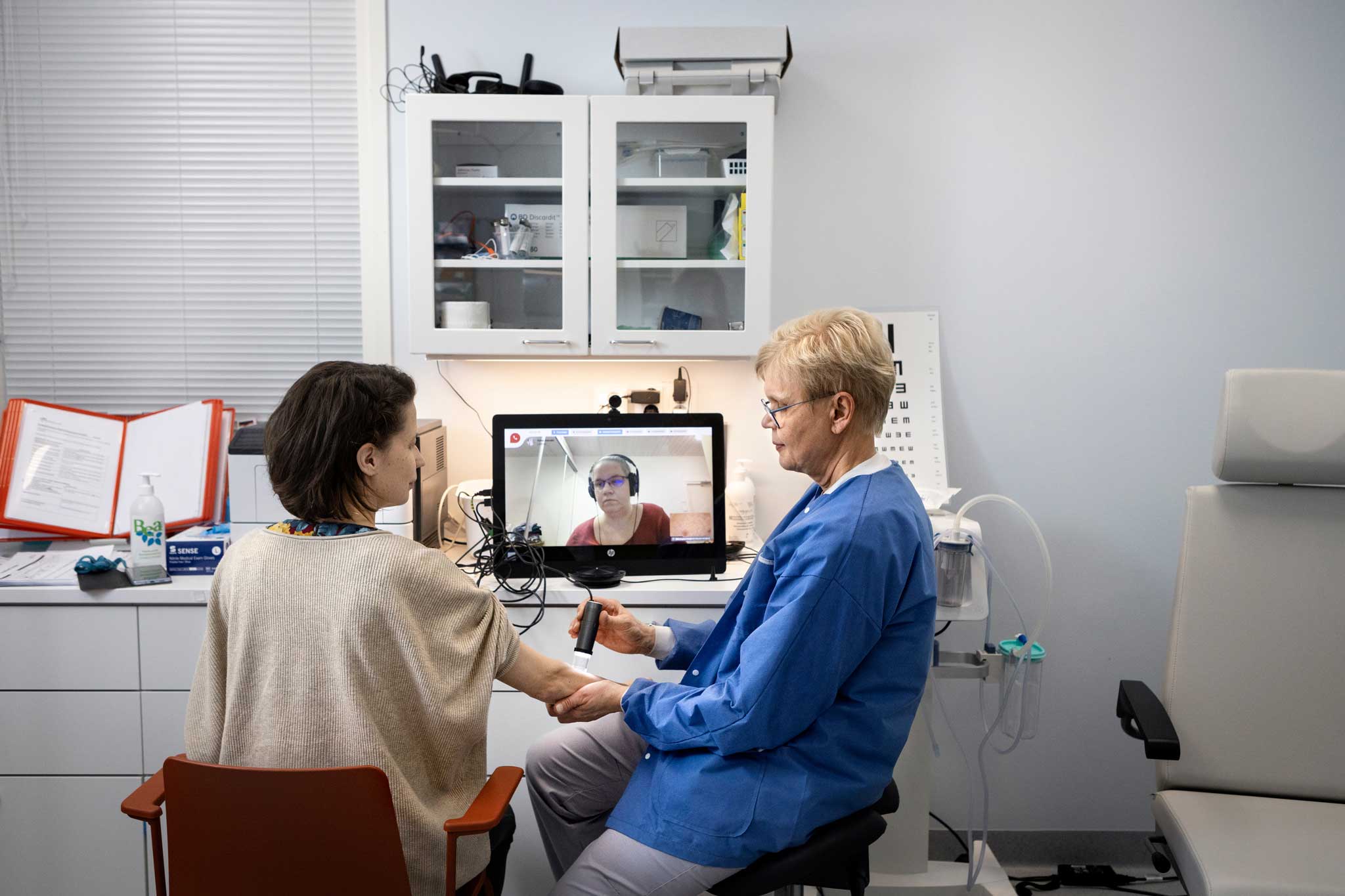 ”Minä käytän täällä Reisjärvellä tarvittavia etädiagnostiikkalaitteita ja niiden avulla Kaisa sitten tutkii potilasta Etelä-Suomessa sijaitsevalta työhuoneeltaan. Asiakkaat ovat tykänneet tästä etävastaanottotavasta. Hekin ovat olleet positiivisesti yllättyneitä, kuinka hyvin tämä toimii.”