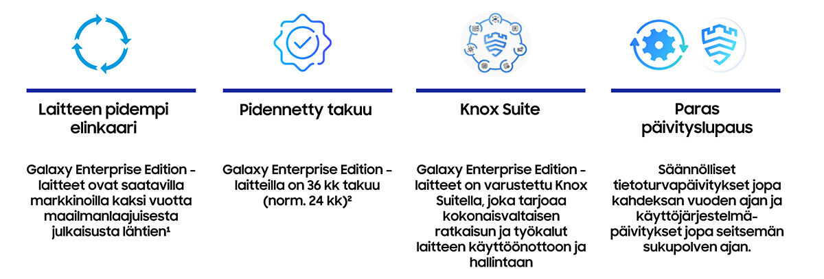 2. Pidennetty takuu koskee vuonna 2023 ja siitä eteenpäin julkaistuja Galaxy Enterprise Edition -laitteita