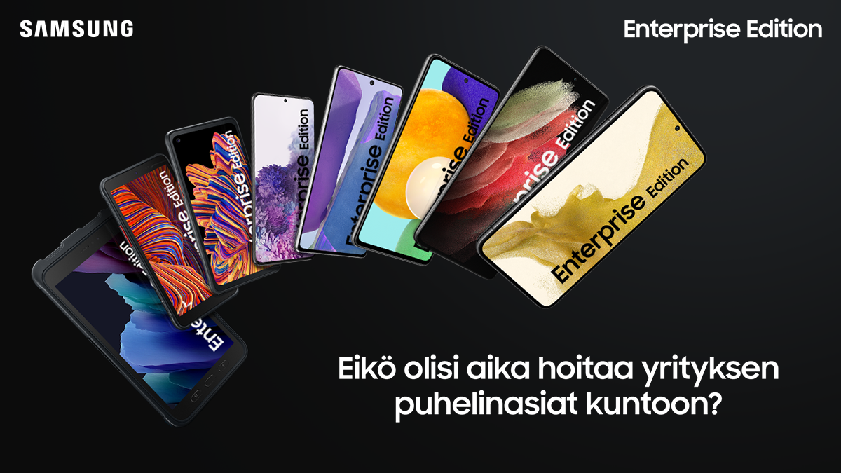 Samsungin yrityskäyttöön räätälöidyt laitteet kulkevat nimellä Samsung Enterprise Edition. Samsung Enterprise Edition yksinkertaistaa yrityksen puhelinten hallintaa, sekä mahdollistaa puhelinten käytön aiempaakin tuottavammin ja tehokkaammin. Puhelimissa on enemmän hallintamahdollisuuksia ja säännölliset tietoturvapäivitykset jopa viideksi vuodeksi*, eli pidempään kuin yksityishenkilöille yleensä myytävissä puhelimissa. Lisäksi ratkaisun ansiosta yrityksen puhelinten määritys ja hallinta on aiempaa yksinkertaisempaa. Samsung Enterprise Editionin ansiosta työlle jää enemmän aikaa.