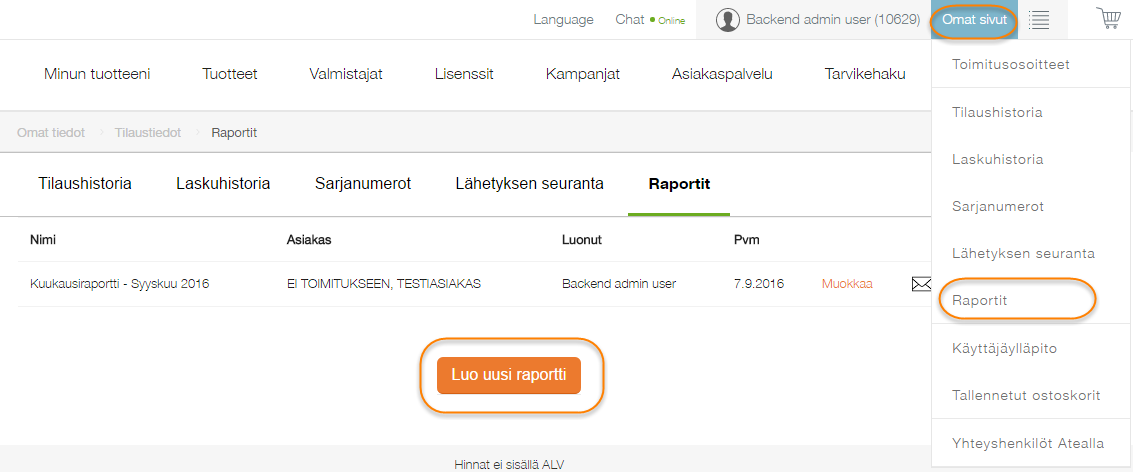 Voit nyt tarkastella raporttia eSHOP näkymässä, jolloin voit myös siirtyä suoraan tilauksien tarkempiin tietoihin raportin kautta.