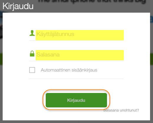 Sisäänkirjautuminen käyttäjätunnuksilla