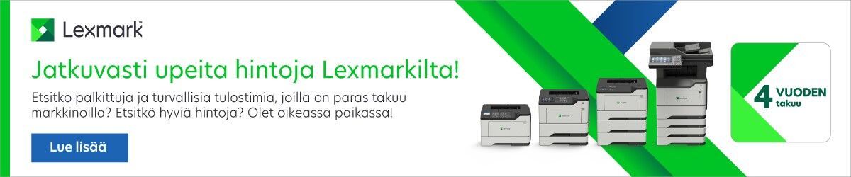 Lexmark ymmärtää, että jokainen asiakas on tärkeä. Tarvitset sitten paikallista tai globaalia ratkaisua, Lexmark tarjoaa monipuolisia tulostimia ja monitoimilaitteita yksittäisille henkilöille, pienille tai suurille työryhmille. Tämän takia olemme lanseeranneet tuotelinjan, joka täyttää yrityksesi tarpeet edulliseen hintaan tänään ja auttaa kasvattamaan liiketoimintaasi huomenna.