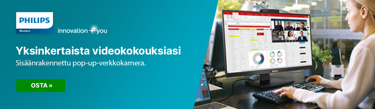 Tie hyvään työympäristöön alkaa todella hyvistä laitteista. Philips tarjoaa aina korkearesoluutioisia näyttöjä kaikessa FHD:stä, QHD:stä (2K-resoluutio) aina UHD:hen (4K-resoluutio). Tämä paneelityypeissä, kuten VA tai IPS, jossa HDR (High Dynamic Range) takaa erinomaisen värintoiston*. Sama yksityiskohtainen kuvanlaatu löytyy myös Philipsin UltraWide (34-40") ja SuperWide (45-49") näytöistä. Nämä 2-in-1-ratkaisut tarjoavat suuremman ja mukavamman näyttöalueen, joka sopii erinomaisesti suuriin Excel-tiedostoihin ja videokokouksiin! Useissa valituissa malleissa on myös sisäänrakennettu pop-up-verkkokamera, joka on kätevä ratkaisu korkearesoluutioiseen viestintään*.